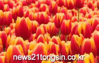 날씨는 아직 춥고 우중충하지만 온갖 화사한 색상의 탐스러운 튤립 꽃송이들이 보는 이들의 얼굴을 환히 밝혀준다.