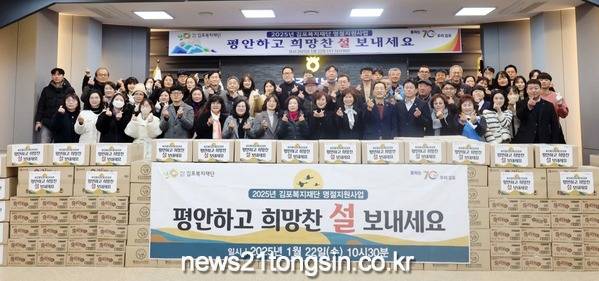▲ 사진=김포시김포복지재단은 지난 22일, 설명절을 맞아 김포시와 재단에서 준비한 식료품꾸러미(5만원 상당) 800박스, 떡국떡 2,532kg, 컵떡국 4,400개, 백미(10kg) 100포를 읍면동에서 추천한 취약가구와 사회복지시설·단체에 지원했다.