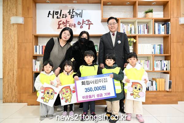 ▲ 사진=양주시양주시(시장 강수현)가 지난 22일 회정어린이집(원장 성경진)에서 성금 35만 원을 기부했다고 밝혔다.
