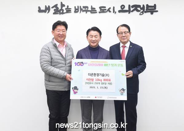 김동근 시장은 “설 명절을 앞두고 지역 어르신들을 위해 따뜻한 나눔을 실천해 주신 이한빈 대표와 더죤환경기술㈜에 깊이 감사드린다”며 “기부해 주신 쌀은 관내 경로당을 이용하시는 어르신들께 소중히 전달하겠다”고 말했다.