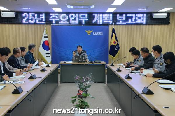 전북특별자치도 정읍경찰서(서장 김한곤)에서는 지난 22일 오전 3층 두승산홀에서 경찰서장, 각 과장, 계·팀장이 참석한 가운데 25년 주요업무계획 보고회를 개최했다.