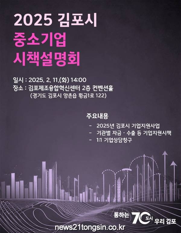 ▲ 사진=김포시김포시는 ‘2025년 김포시 중소기업 시책설명회’를 오는 2월 11일 오후 2시 김포제조융합혁신센터에서 개최한다고 밝혔다.
