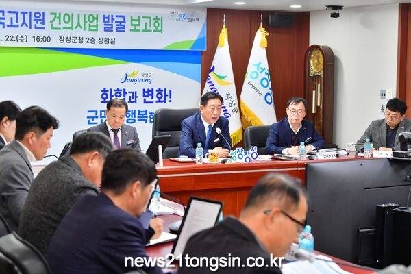 장성군이 내년도 국비 확보를 위한 발빠른 대응에 나섰다. 군은 22일 군청 상황실에서 김한종 장성군수 주재 ‘2026년도 국고건의사업 발굴보고회’를 가졌다.