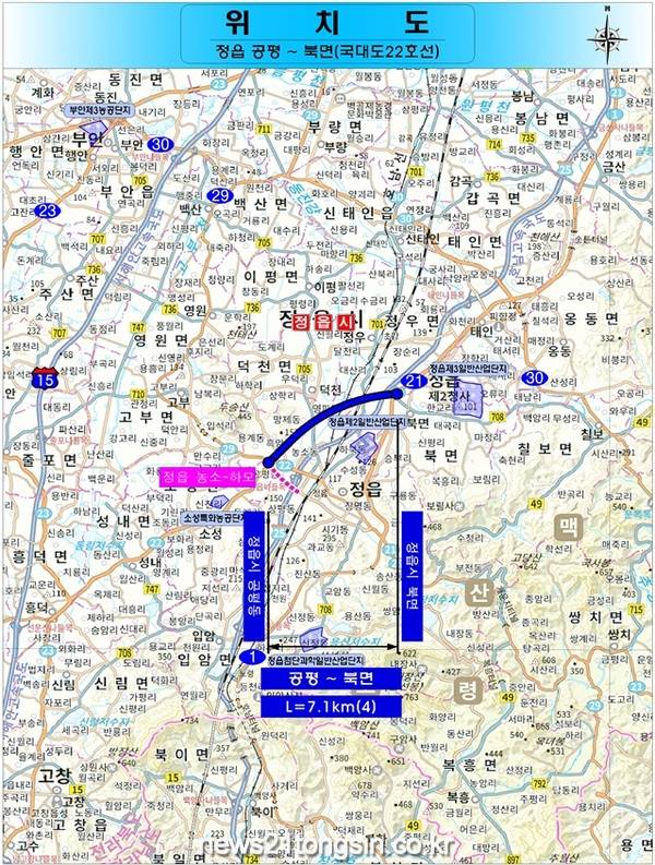 시는 전북연구원(김상엽 박사)과 공조해 공평동과 북면을 잇는 국도대체우회도로(국도 22호선) 개설사업(7.1km, 2,130억 원)과 칠보와 임실 덕치를 연결하는 국도 30호선 개량사업(20.0km, 1,040억 원)이 기획재정부의 예비타당성조사 대상에 포함돼 1차 관문을 통과했다고 24일 밝혔다.