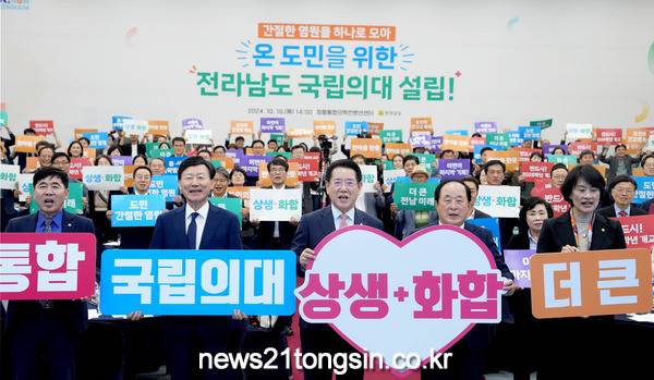 김영록 전남도지사는 “도민의 건강권과 생명권을 확보하고 지역 의료 완결성을 위해 전남에 의대 설립이 필요하다”며 “온 도민의 역량을 총 결집해 통합의대 설립을 반드시 이뤄낼 것”이라고 강조했다.