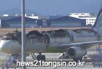 ▲ 사진=kbs뉴스 영상 캡쳐구멍이 뻥 뚫린 채 곳곳이 불에 그을린 사고 항공기.