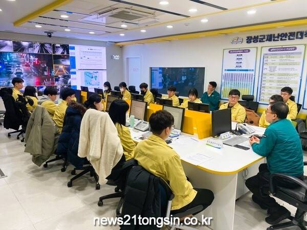 장성군 재난안전대책본부가 대설주의보에 철저 대응 중이다. 13개 협업부서가 24시간 재난상황실 근무를 통해 분야별 재해 예방 및 상황 대처에 나서고 있다.