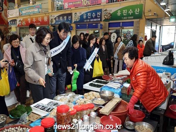 공무원과 토요시장 상인회, 지역 주민 등 300여 명은 지역경제 회복을 위한 퍼포먼스와 함께 설맞이 제수와 지역의 다양한 농·축·수산물을 구입하며 민생경제 살리기에 힘을 보탰다.