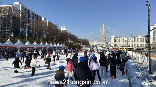지난 2024년 12월 20일(금) 개장한 신천 스케이트장·눈놀이터는 대봉교 상류에 위치한 물놀이장을 재정비해 스케이트장(1,276㎡), 눈놀이터(180㎡), 눈썰매장(371㎡), 야간경관 특화공간 등을 설치하여 운영했다.