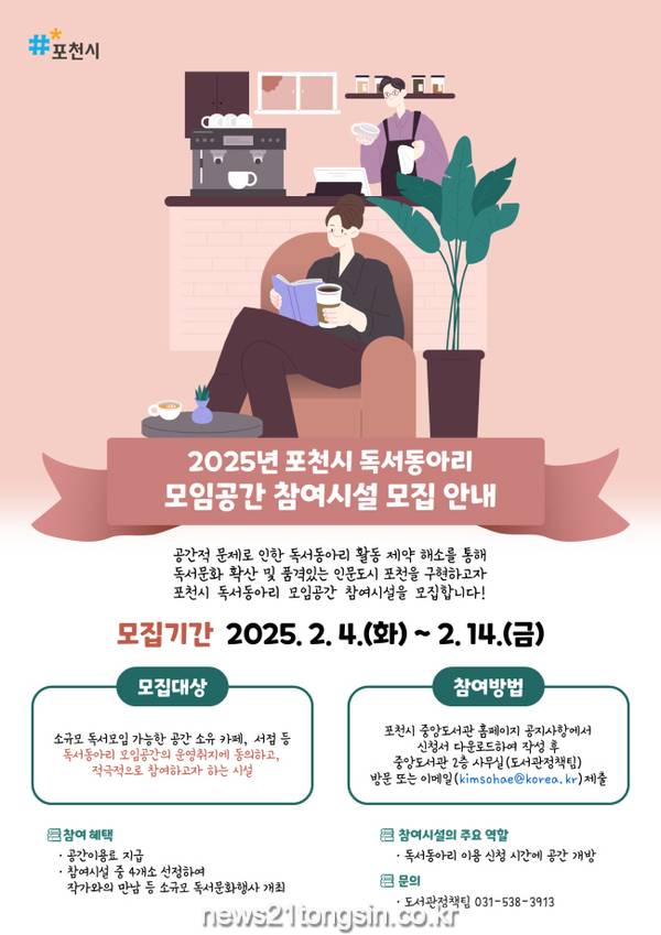 ▲ 사진=포천시포천시(시장 백영현)가 오는 14일까지 ‘2025년 독서동아리 모임공간 지원 사업’에 참여할 시설을 모집한다.
