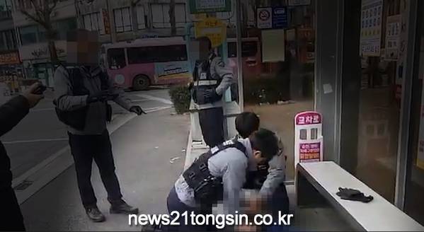 지난 1월 31일 오전, 순천시 소재 버스정류장에서 A씨가 쓰러졌다는 112신고를 접수받고 순천경찰서 역전파출소 소속 정종훈 경위와 양주원 순경이 긴급 출동했다.