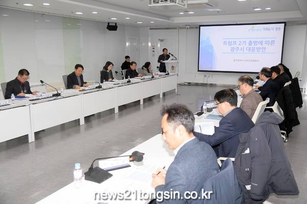 ▲ 트럼프 2기 출범에 따른 광주시 대응방안광주시와 수출 유관기관들이 긴급회의를 열어 ‘트럼프 관세정책’에 맞서 지역 수출산업 경쟁력 강화를 위해 총력 대응하기로 했다.