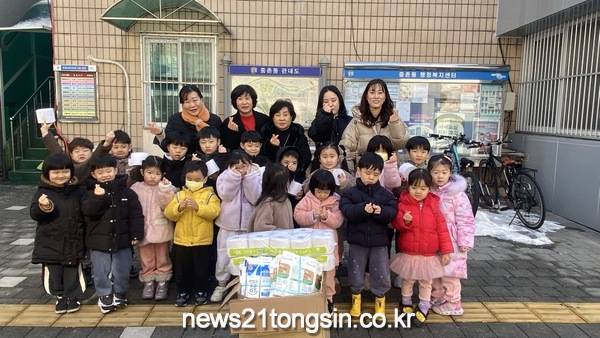 대전 중구 중촌동(동장 김효숙)은 11일 미소어린이집(원장 신복례) 원아들이 동 행정복지센터를 방문하여 우유팩과 폐건전지를 화장지와 새 건전지로 교환하는 재활용 체험 행사를 진행했다고 밝혔다.