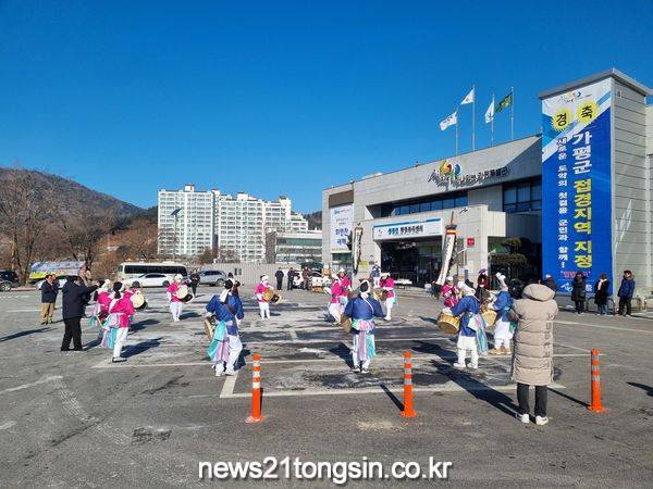 ▲ 사진=가평군가평군 청평면은 꽃피울래풍물단이 지난 8일 청평면 일원에서 ‘을사년 새해맞이 청평면 지신밟기’ 행사를 개최했다고 11일 밝혔다.