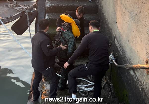 사고 당시, 주변에 있던 선원들은 익수자 A씨(70대, 남)에게 로프를 던져 구조를 시도했으나, A씨는 힘에 부쳐 육지로 올라오지 못하고 있었던 상황이었다.