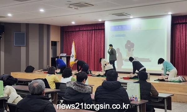 「산업안전보건법」에 따른 산업재해 예방을 위한 안전보건교육으로, 안전보건공단과 김포소방서의 협조를 받아 ▲산업재해 사례 ▲근무 중 안전수칙 ▲심페소생술의 절차와 방법 등 이론과 실습 교육이 함께 이루어졌다,
