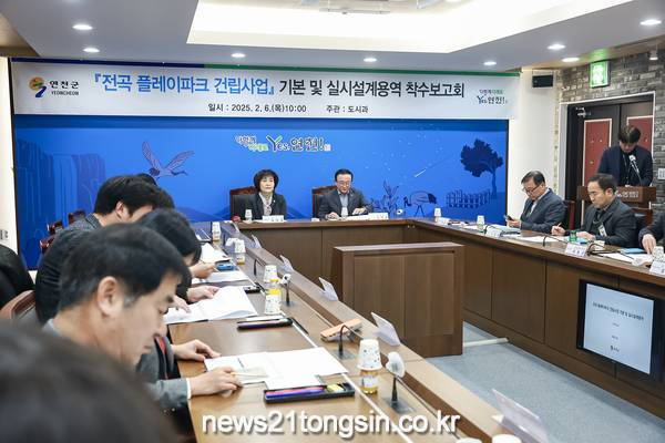 ▲ 사진=연천군연천군은 최근 본관 2층 상황실에서 김덕현 연천군수를 비롯해 군의원, 관련 부서장 등 20여명이 참석한 가운데 ‘전곡 플레이파크 건립사업 설계용역 착수보고회’를 개최했다고 12일 밝혔다.