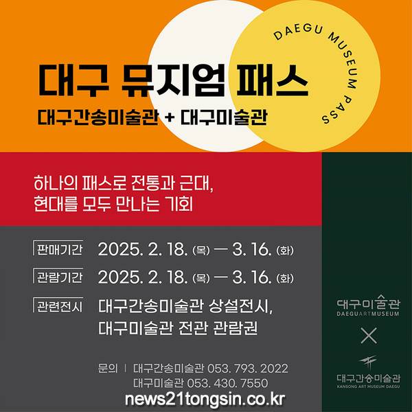 이번 통합관람권은 1월 14일(화) 개막한 대구미술관 상설전과 1월 16일(목)부터 시작된 대구간송미술관의 첫 상설 전시를 기념해 도입됐으며, 이를 계기로 두 미술관은 공동 마케팅을 통해 국내외 관람객 유치에 적극 나설 예정이다.