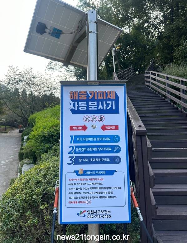 인천 서구(구청장 강범석)는 해충 방제의 효과성을 높이고, 주민들이 안전하게 사용할 수 있도록 해충기피제 분사기의 집중 점검 및 안내판 교체 작업을 완료했다.
