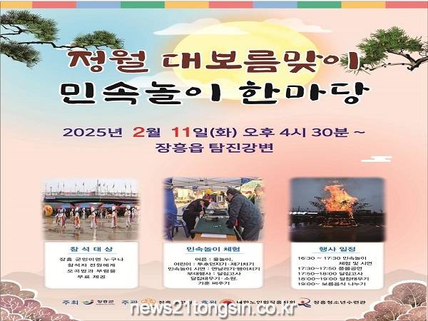 장흥군은 2월 11일 탐진강변에서 정월대보름맞이 민속놀이 한마당 행사를 개최한다고 밝혔다.
