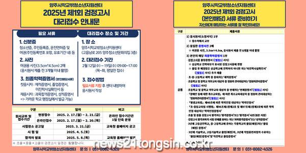 검정고시 접수 대행 및 학습 지원에 관한 자세한 사항은 양주시 꿈드림(031-8082-4326)으로 문의하면 된다.