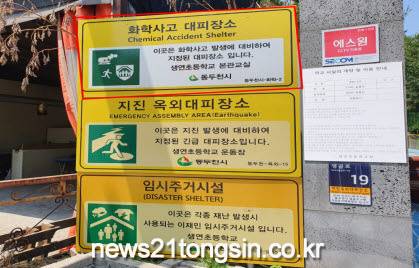 현재 동두천시 대피 장소는 동보초등학교와 생연초등학교 2개소이며, 화학사고 발생 시 각각 시민 2천9백 명, 3천6백 명을 수용할 수 있는 규모이다.