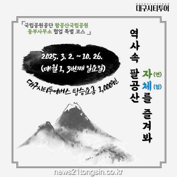 이재성 대구광역시 문화체육관광국장은 “팔공산은 대구를 대표하는 자연유산으로, 그 속에 숨겨진 역사적 가치와 풍부한 생태자원을 알리기 위해 팔공산국립공원과 협업해 이번 특별노선을 기획했다”며, “많은 시민과 관광객이 이 특별한 여행을 통해 팔공산의 아름다움을 직접 체험하고, 우리 지역의 관광자원을 깊이 이해할 수 있는 기회가 되기를 바란다”고 말했다.