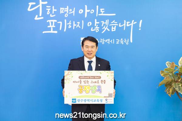 이정선 교육감은 18일 시교육청에서 긍정양육을 위한 ‘아동학대예방 릴레이 캠페인’에 참여했다.