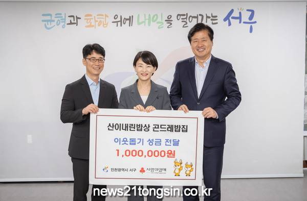 이날 전달받은 성금은 인천사회복지공동모금회를 통해 서구 저소득주민을 위해 쓰일 예정이다.