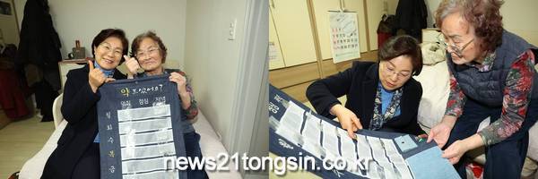 김미경 구청장은 지난 14일 ‘약품달력’으로 건강관리의 실효성을 알리고 주민의 의견을 들으며 실제 사용상의 편리성과 개선점 점검을 위해 관내 어르신 가정에 직접 방문했다.