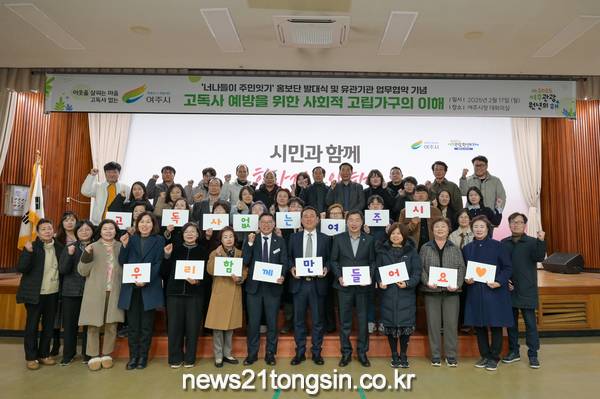여주시(시장 이충우)는 지난 2월 17일 ‘너나들이 주민잇기’ 고독사 예방 홍보단 발대식 및 기관 간 업무협약 체결식을 개최하고, 지역사회와 함께 고독사 예방을 위한 본격적인 활동을 시작했다고 밝혔다.