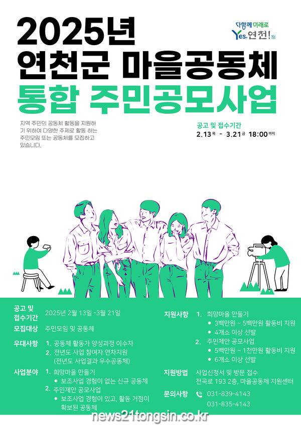 ▲ 사진=연천군연천군은 다음달 17일부터 21일까지 신규 마을공동체를 발굴하고 지역 주민의 활동을 지원하기 위해 ‘2025년 마을공동체 주민 제안 및 희망마을 만들기 통합 주민공모사업’ 신청을 받는다고 밝혔다.