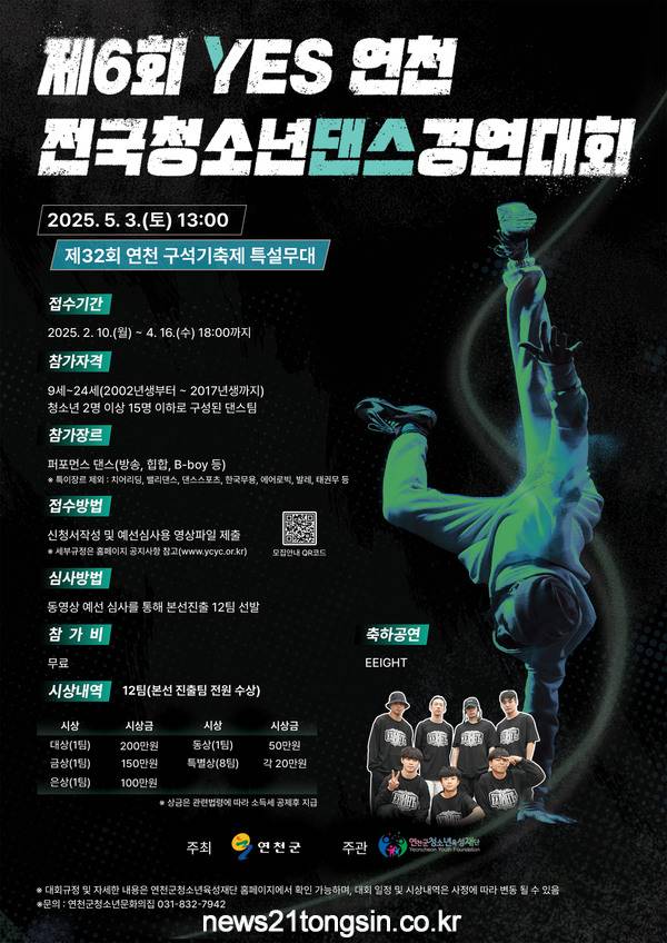 이번에 진행되는 연천군 전국 청소년댄스경연대회는 2019년 첫 시작으로 현재까지 6회째를 맞이하고 있으며, 전국의 청소년들의 자신들의 끼와 재능을 펼칠 수 있는 연천군의 청소년 특색 사업이다.