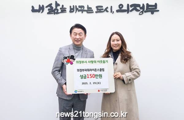 의정부시(시장 김동근)는 2월 19일 의정부파워라이온스클럽(회장 전은영)이 성금 150만 원을 기탁했다고 밝혔다.