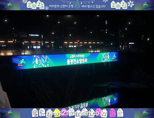 은평구(구청장 김미경)는 지난해 겨울 진행된 ‘소망이 이루어지는 불광천 소망트리’ 이벤트에서 주민들이 작성한 소망 메시지를 불광천 미디어브릿지를 통해 영상으로 내달 12일까지 송출한다고 밝혔습니다.