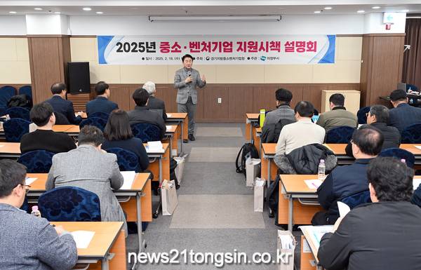 의정부시(시장 김동근)는 2월 19일 경기북부상공회의소에서 ‘2025년 중소‧개척(벤처)기업 지원 시책 설명회’를 개최했다.