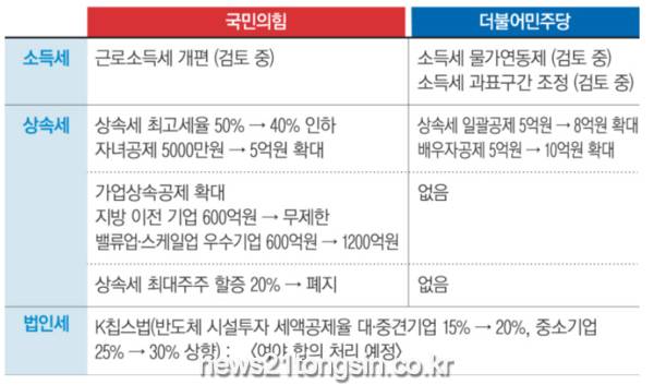 이재명 더불어민주당 대표가 최근 상속세에 이어 소득세, 법인세 감세까지 거론했다. 상속세율 인하를 주장하는 국민의힘도 근로소득세 완화안을 검토 중이다. 저출생·고령화로 복지 지출이 늘어날 수밖에 없는 구조 아래 이미 세수가 3년 연속 줄어든 상황에서 여야가 ‘저부담 고복지’라는 불가능한 목표를 추구하고 있다는 지적이 나온다.