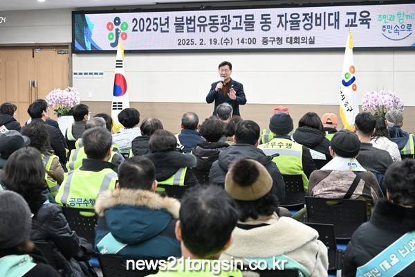 대전 중구(구청장 김제선)는 2025년 불법광고물 동(洞) 자율정비대의 본격 운영을 앞두고, 지난 19일 구청 대회의실에서 참여자 교육을 실시했다고 밝혔다.