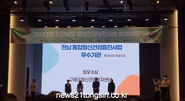 구례군 정신건강복지센터는 지난 20일 전라남도 정신건강증진사업 성과대회에서 동네의원 마음이음 사업 우수 시·군 부문 최우수 기관상 및 우수 동네의원 부문 이정회 내과 의원이 장려상을 수상했다고 밝혔다.