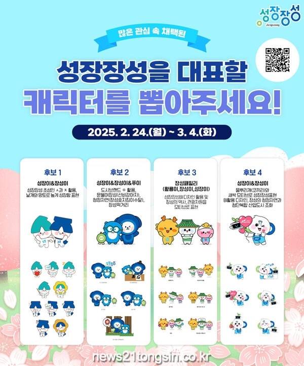 장성군이 3월 4일까지 ‘성장장성 캐릭터’ 선호도 조사를 실시한다.