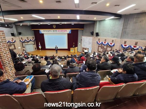 여주로컬푸드 사회적협동조합은 지난 25일(화) 여주대학교 마로니에홀에서 여주로컬푸드 출하 농가 회원 400여 명이 참석한 가운데 ‘여주로컬푸드 생산자 보수의무교육’을 개최하였다.