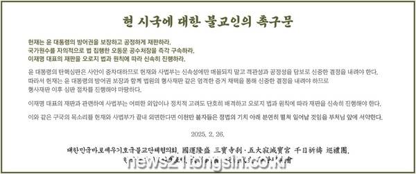 [뉴스21 통신=추현욱 ] 이재명 대통령과 배우자 김혜경 여사가 추석을 이틀 앞둔 4일 국민과 동포들에 보내는 명절 인사를 공개했다.이날 대통령실이 공개한 영상에서 이 대통령은 “한 해 풍요를 기원하며 내일의 희망을 꿈꿔야 할 한가위지만, 즐거움만 나누기엔 민생의 어려움이 여전히 크다”면서 “국민의 삶을 책임져야 할 대...