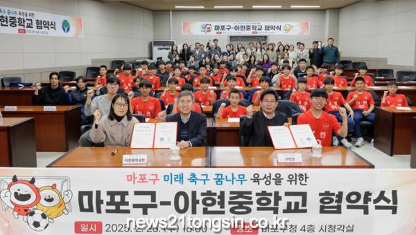 마포구(구청장 박강수)는 26일 오후, 아현중학교와 미래 축구 꿈나무 육성을 위한 업무협약을 체결했다.