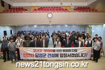 달성군 발주공사의 무사고·무재해를 위해 이날 교육은 공무원, 시공사, 감리 등 공사 관계자 100여 명이 참석한 가운데 결의를 다지며 시작된 교육은 한국산업안전보건공단 대구서부지사의 지원을 받아 20235월 체결된 산업재해 예방 업무협약에 따라 진행됐다.