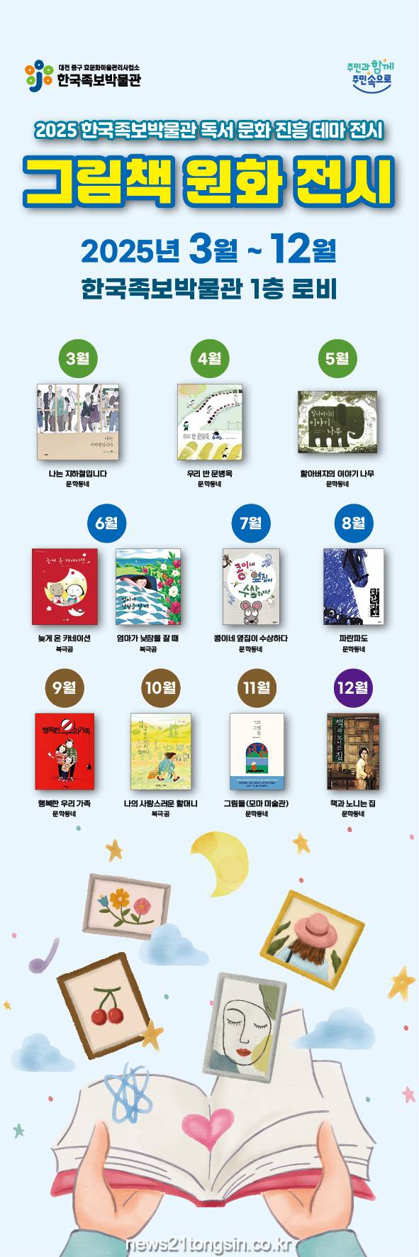 전시는 출판사의 그림책 원화 액자와 제공받은 이미지 파일을 액자로 제작하여 매월 5일부터 25일까지 박물관 1층 기획전시실에서 선보일 예정이다.