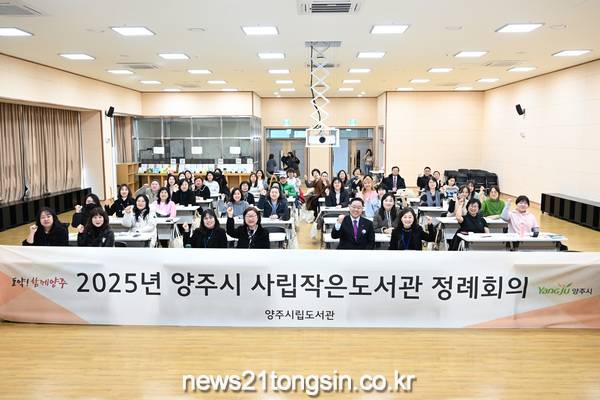 ▲ 사진=양주시양주시(시장 강수현)가 지난 26일 옥정호수도서관 3층 예술극장에서 관내 사립작은도서관 관계자 60여 명이 참석한 가운데 2025년 제1차 양주시 사립작은도서관 정례회의를 개최했다고 밝혔다.