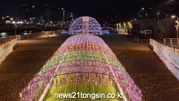 돔 조명 아래에는 꽃 장식과 낙하조명이 더해져 더욱 감각적인 분위기를 연출하며, 포토존에는 LED의자를 배치해 시민들이 앉아 쉬면서 사진을 남길 수 있도록 했다.