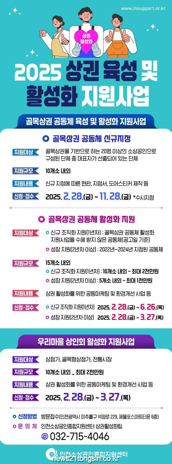인천광역시(시장 유정복)는 골목상권의 자생력을 강화하고 지역 경제를 활성화하기 위해 2025년도‘골목상권 공동체 육성 및 활성화 지원사업’과 ‘우리마을 상인회 활성화 지원사업’을 본격 추진한다.