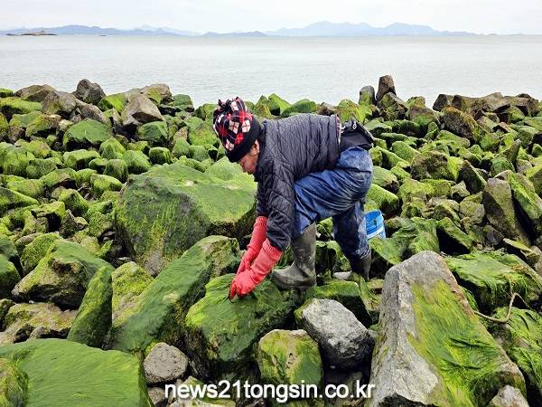 26일 장흥군 관산읍 삼산방조제 인근에서 지역 어민이 파래를 수확하고 있다. 건강한 식재료로 주목을 받는 파래는 철분과 칼륨, 요오드 등 다양한 영양소를 함유하고 있다. 특히, 득량만 청정해역에서 자라는 파래는 향이 깊고 식감이 부드러운 것으로 알려져 있다.