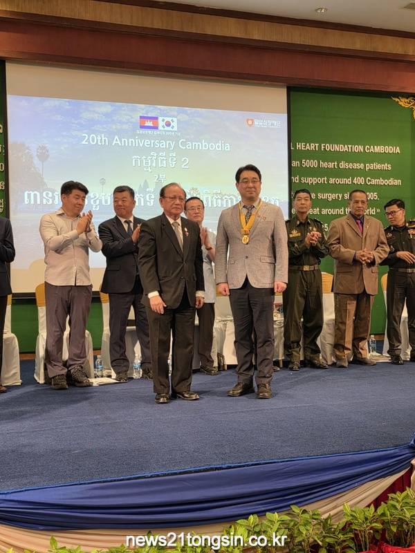[뉴스21통신전북취재팀] 전북특별자치도 전주예수병원(병원장 신충식)은 캄보디아 프놈펜 호텔에서 열린‘밀알심장재단 캄보디아 심장병 환우 수술 20주년 축하행사에 참석해 훈 마넷 캄보디아 총리로부터 신충식 병원장이 훈장을 받았다고 5일 밝혔다.